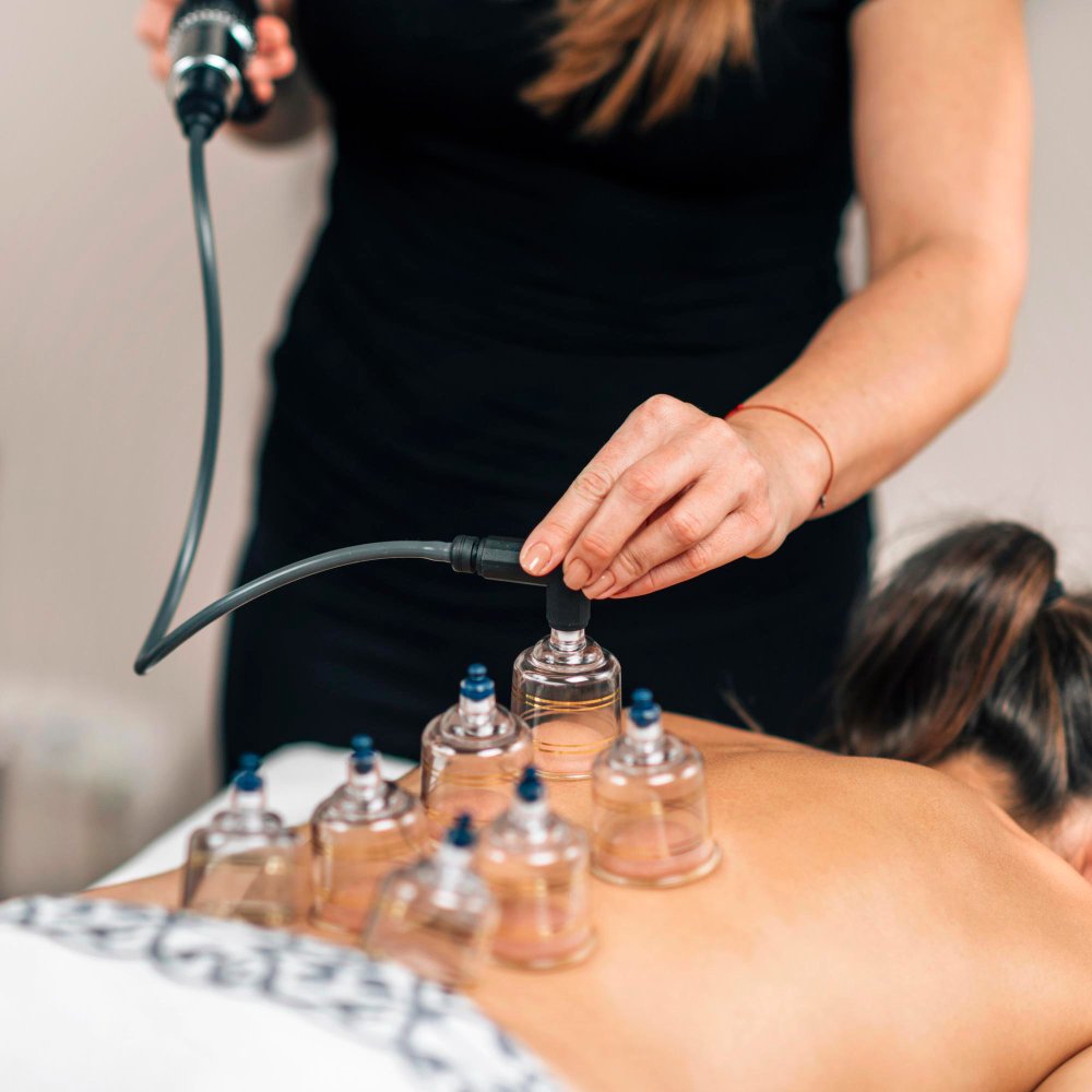 cups on skin for few minutes to create suction. It mainly used for musculoskeletal conditions.
